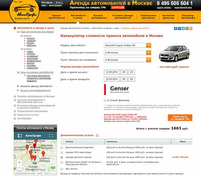 - Нас заинтересовал прокат «Рено Логан». Нажимаем «Заказать» и оказываемся в специальной форме.